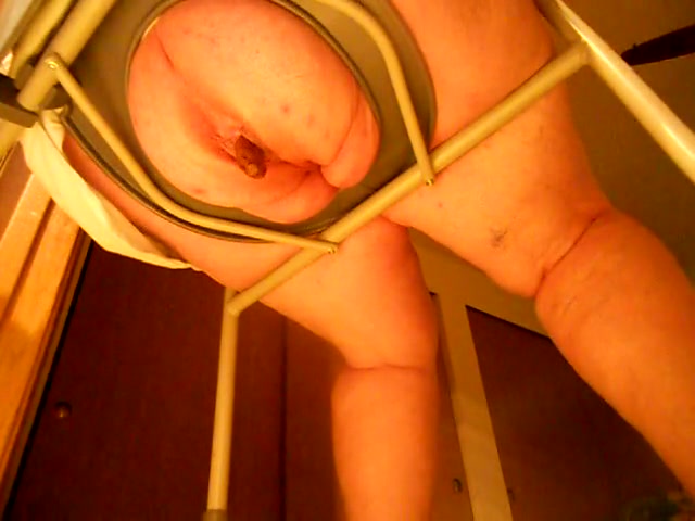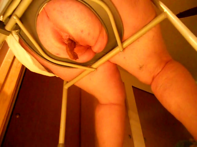 plumpy woman taking a shit on her special scat toilet
