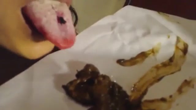 College girl gets naked in front of the camera. She's playing with fresh shit, smearing it on her red lips.