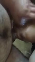 Fat babe sits naked on her knees and she's sucking erect black cock after rough anal sex.