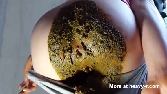 Young brunette dropped a huge load in her grey panties. She smears that shit on her entire ass and tease us with it.