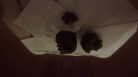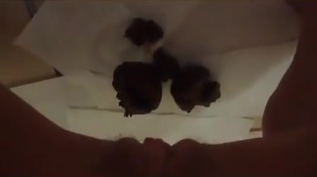 She records her shaved pussy and ass in close up while she's pooping a heavy turd in toilet.