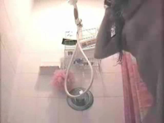 Black girl teasing with her pieced naked body while peeing on bathroom floor.