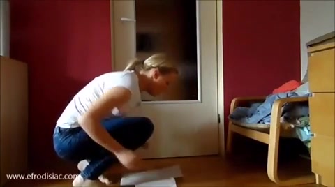 Girl pooping on the floor while doing laundry
