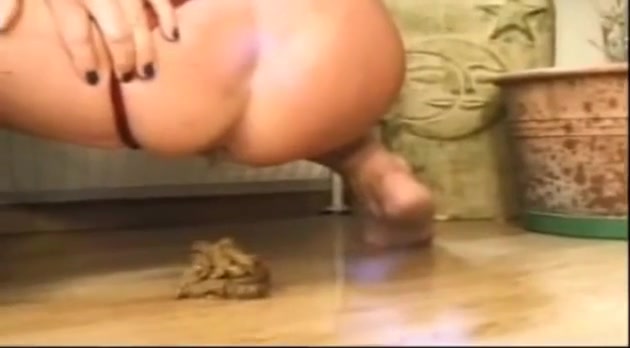 Vitnage video of a horny milf that's getting fucked right after she finished pooping on bedroom floor.