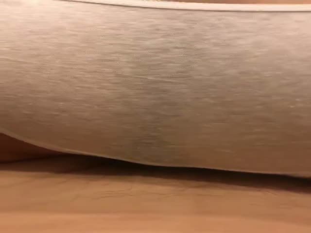 Chubby wife is pooping in grey panties. She smears poop on her big ass.
