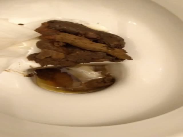 Blonde housewife was forced by her kinky husband to eat fresh shit from a dirty toilet.