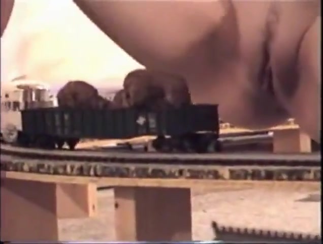 Vintage video of a brunette babe that's pooping on a moving train toy.