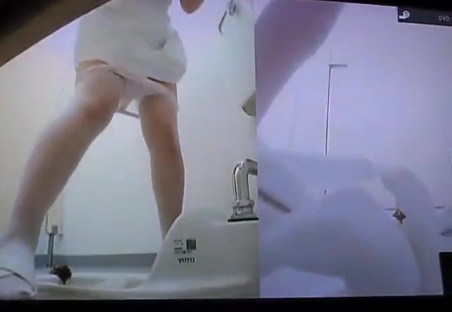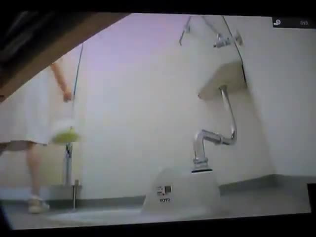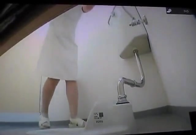 Japanese nurse using a public bathroom because she has serious diarheea. We can see her through a hidden camera.