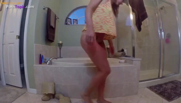 Licking her feet while smearing poop