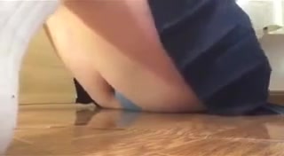 nervous schoolgirl is peeing in mini skirt and her panties while trying to hide her face from the camera.