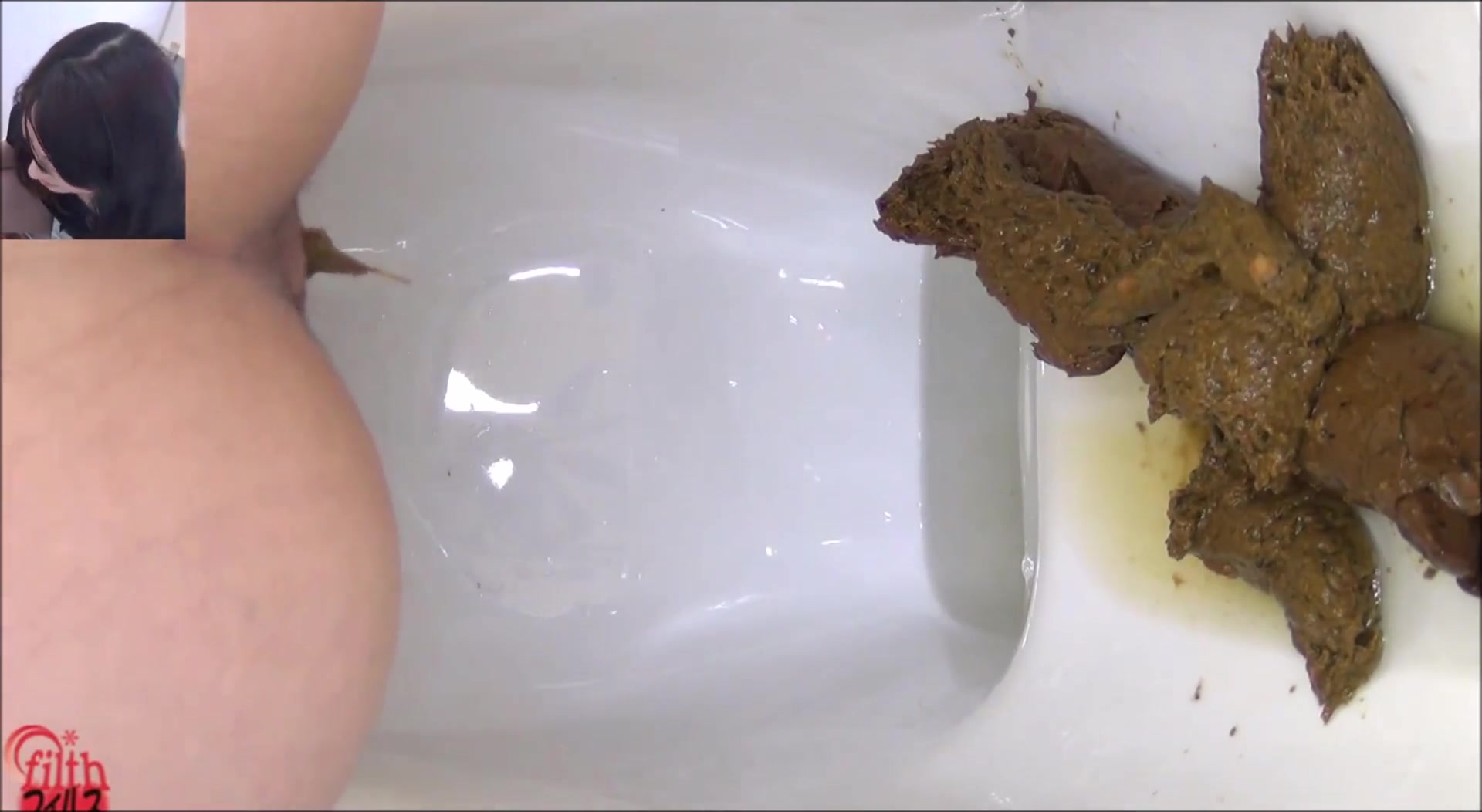 Japanese teen went to take a shit in a public bathroom. She dropped a big pile of poop there without knowing that a hidden camera is installed there.