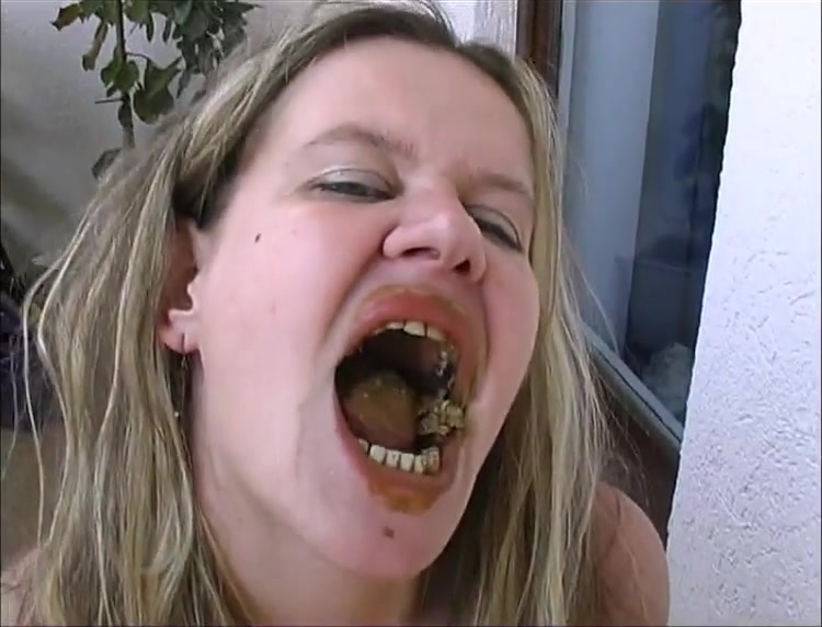 Busty German milf eating a lot of shit