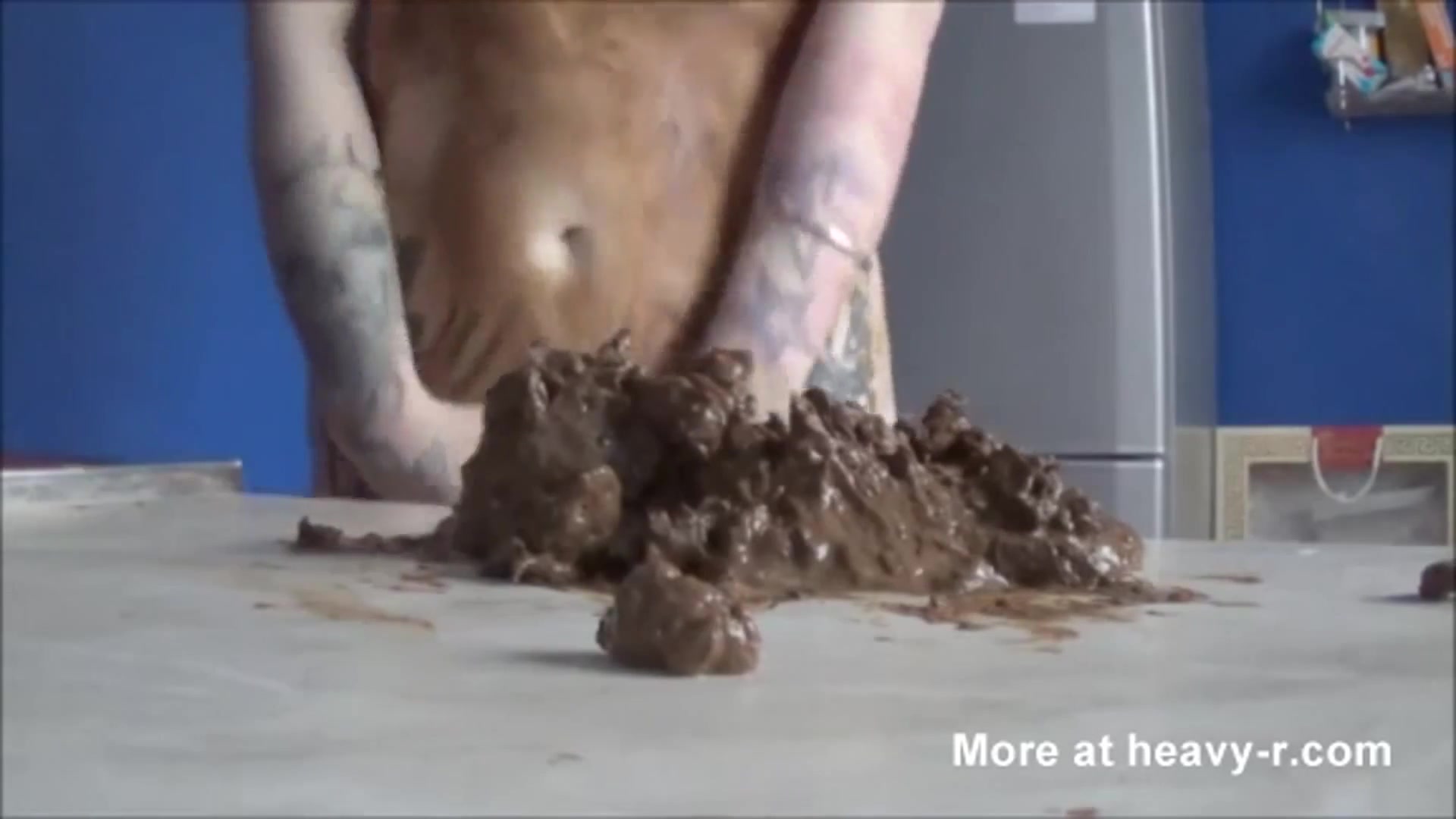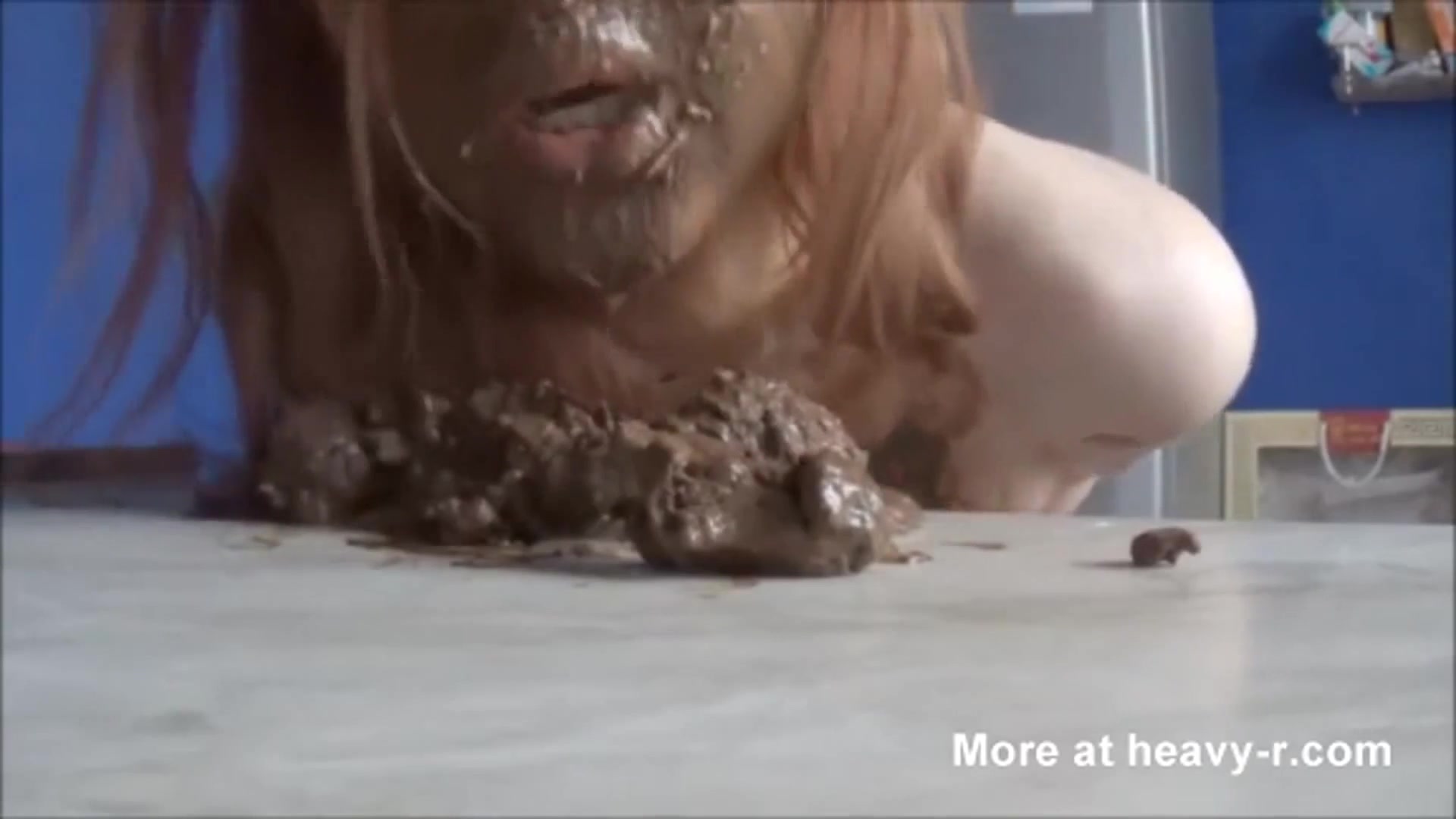 Redhead teen smears fresh poop on her entire body. College girl masturbating with poop until reaching orgasm.