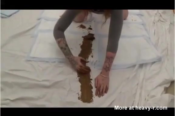 18 year old girl smears fresh poop on her entire body. She's masturbating with it until reaching climax.