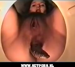 Amazing view of a sexy babe that's pooping and using a homemade toilet.