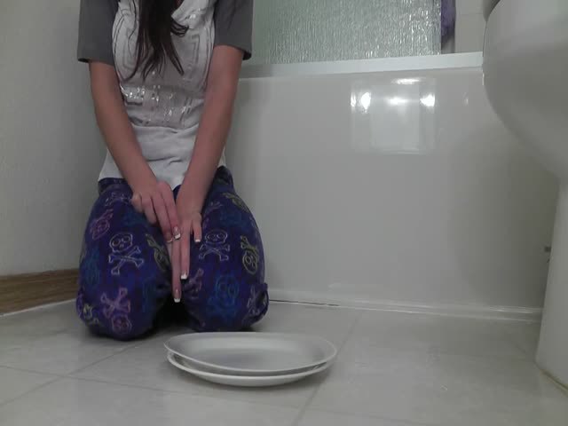Beautiful brunette undressed slowly in front of the camera. She's teasing us with her ass while pooping on a plate.