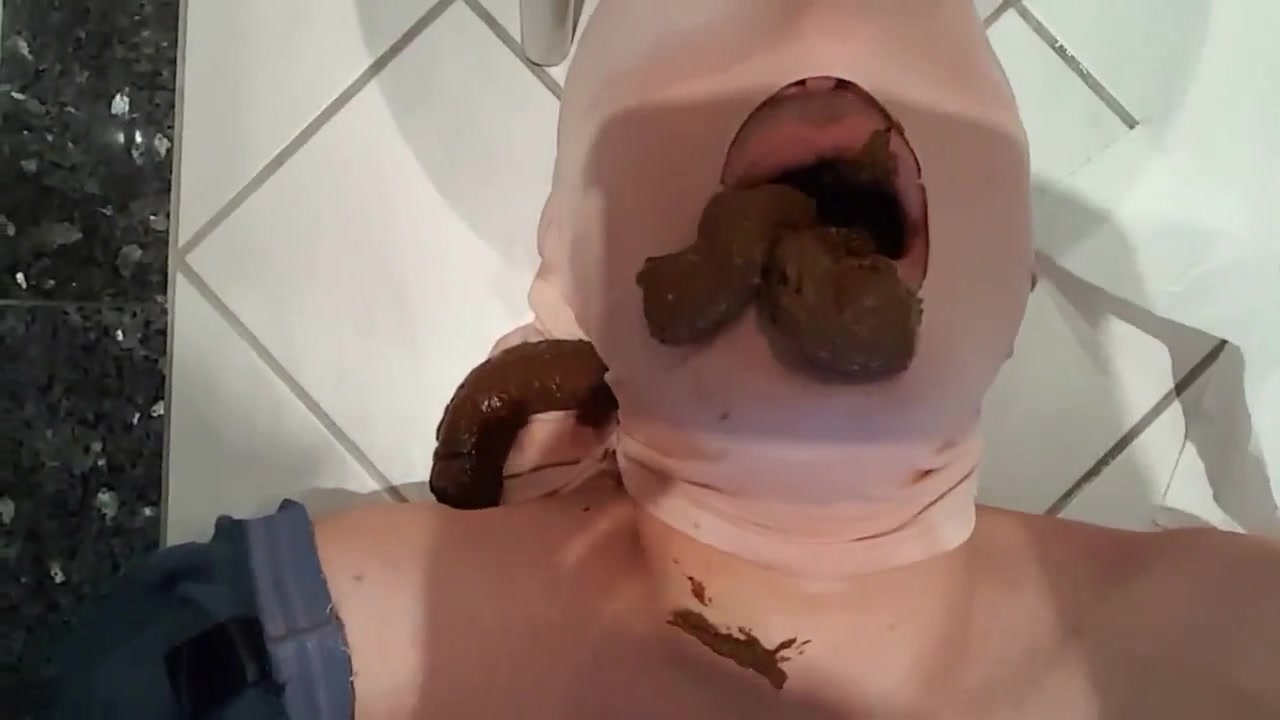 She's using her boyfriend as a human toilet. She's pooping a lot in his opened mouth.