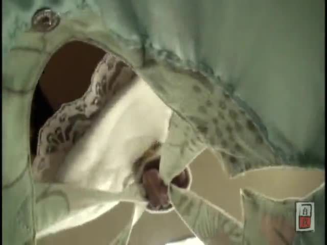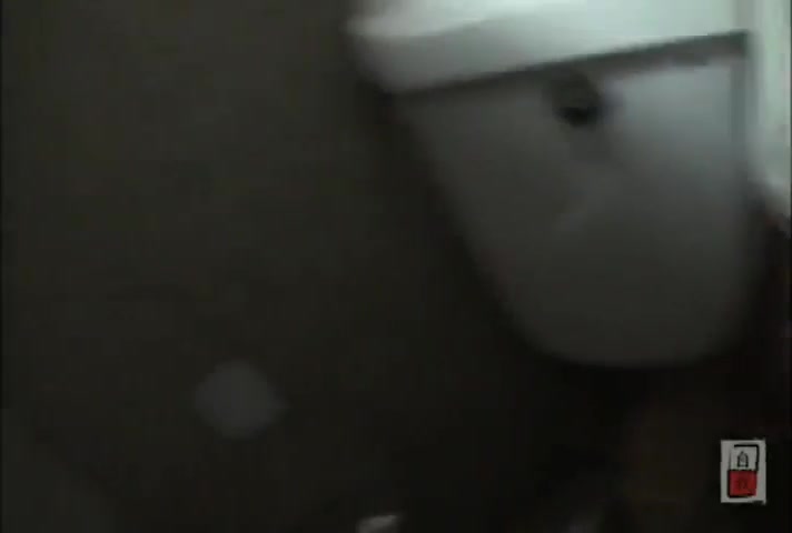 He's using a hidden camera to spy on a brunette teen that's doing enema in a public place.