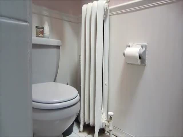 Sexy babe spreads her butt cheeks wide opened and she's pushing big floating logs over toilet.