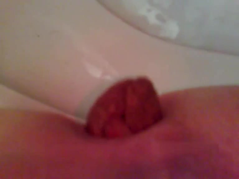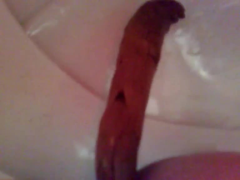 Real close up of a sexy babe that's pooping a big turd in toilet.