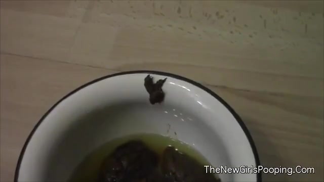 BBW babe is very funny and she's telling jokes while pooping in a metallic bowl.