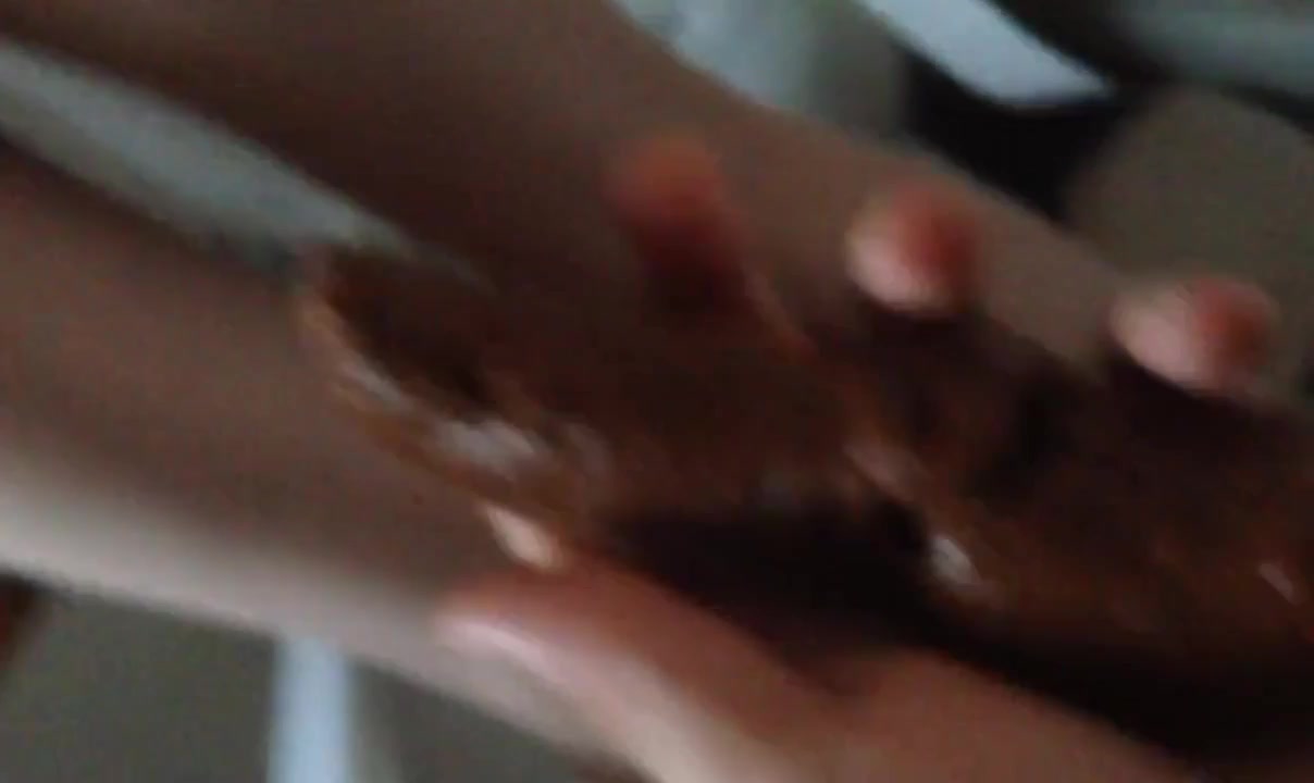 Sexy babe dropped a huge turd on her hands and she's playing with it