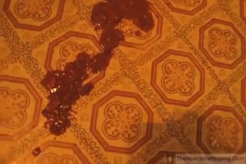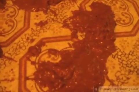 BBW babe injected her dirty ass with water and she's pooping liquid shit on bathroom floor because of that.