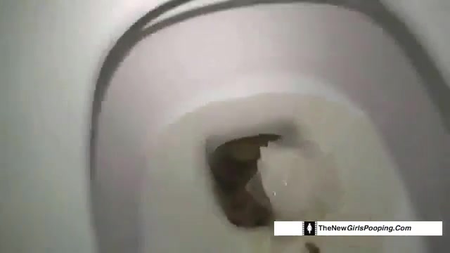 Dark haired babe shaking her ass in front of the camera and she's pooping over toilet.