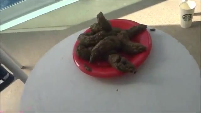 Amateur girl slaps her ass and she's pooping a lot on a red plate.