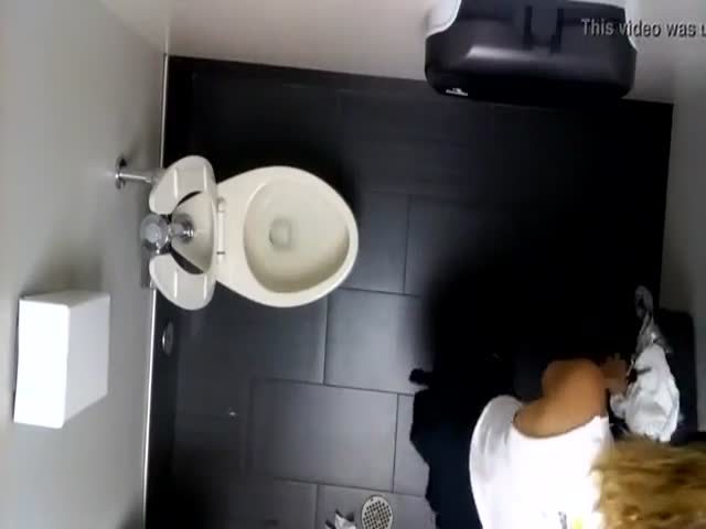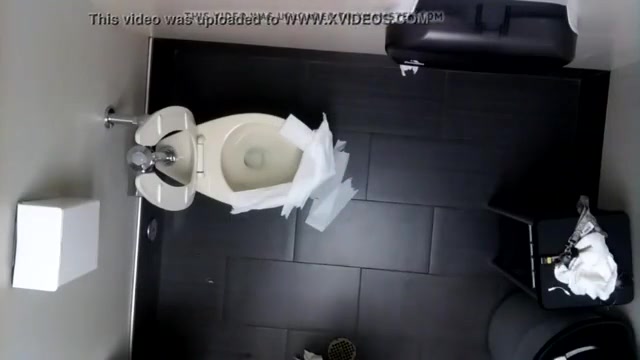 He's using a hidden camera to spy on a sexy tattooed babe pooping in toilet.