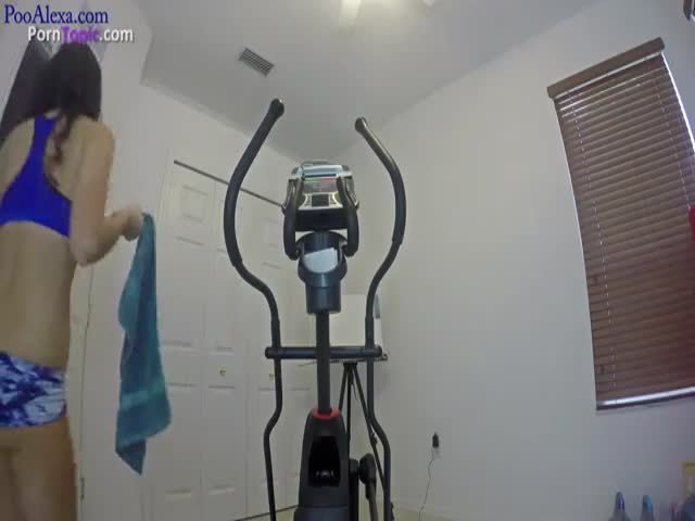 Beautiful teen ride her home bike. She's shitting in her panties by mistake but continues to exercise.