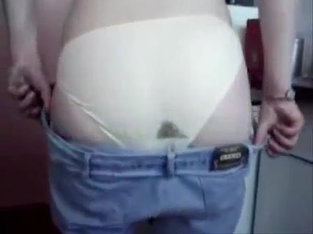 Amateur babe dropped a big pile of shit in blue jeans. She smears that poop on her ass and pussy.