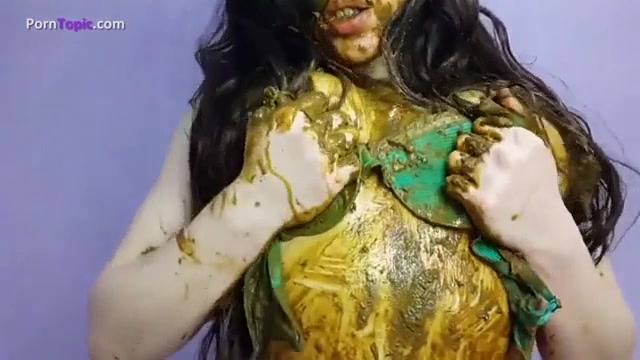 Dark haired college girl smears shit on her entire body
