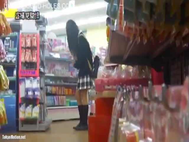Sick guy using a hidden camera to spy on a Japanese teen that's pooping in a public bathroom.