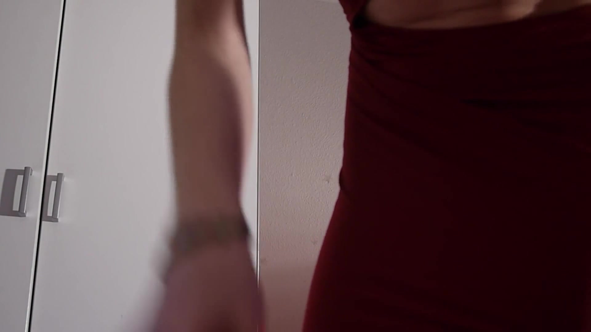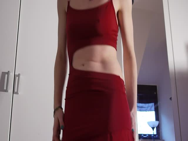 Wearing a tight red dress before pooping