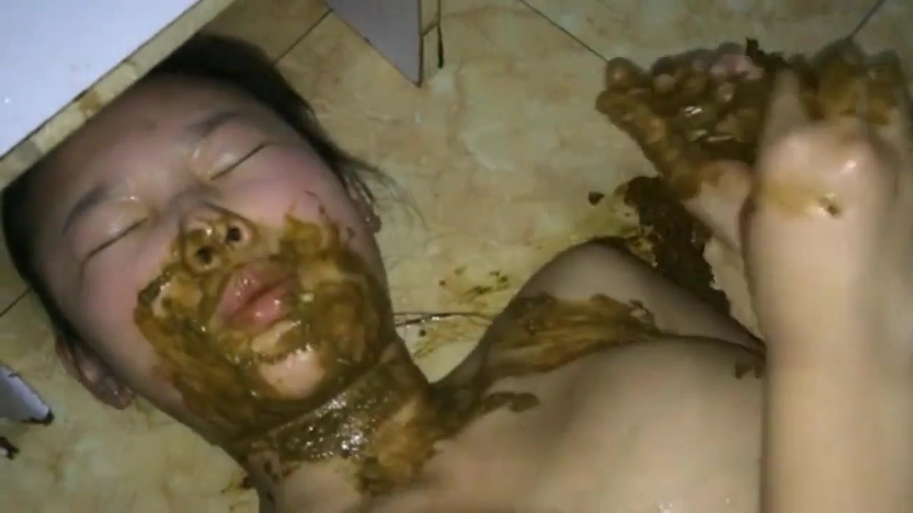 Dark haired Japanese girl lays naked on bathroom floor and she's waiting for her boyfriend to poop on her entire face.