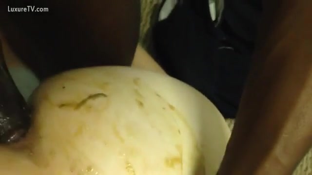 White girl fucked in the ass by a muscular black guy. She can't stop shitting on his cock.
