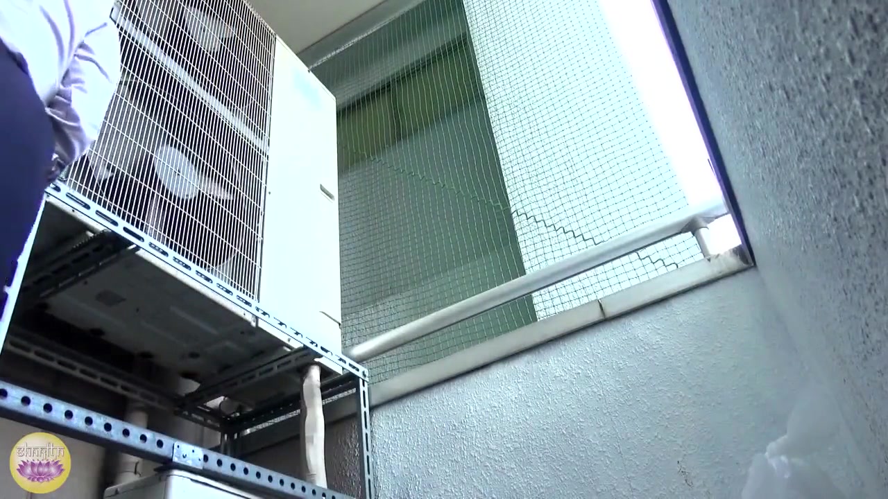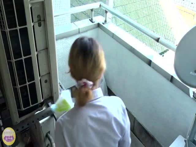 He's using a hidden camera to spy on a sexy secretary shitting on a balcony.