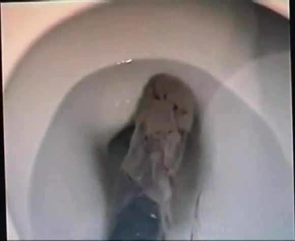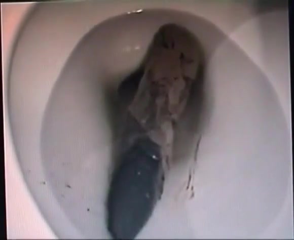 Brunette babe dropped a huge turd in toilet. She tried to flush it but she failed.