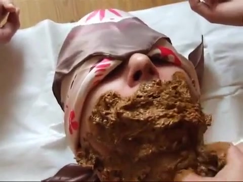 She forced her male slave to eat fresh shit. She stuffed his mouth with a lot of brown poop.