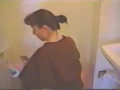 Vintage video of a sexy milf that's pooping and peeing in toilet.