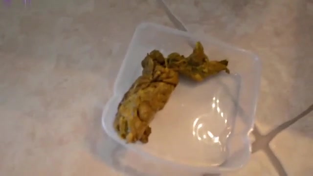 Beautiful babe teasing with her big belly. She's pooping a lot on a white plate.