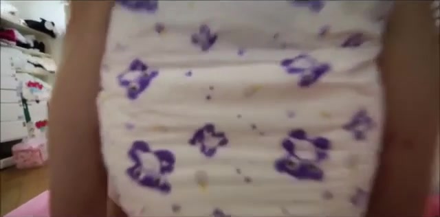 Alternative girl giving a blowjob while she's pooping in a pair of white diapers.