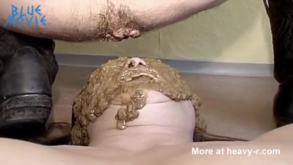He smears brown shit on girlfriend's face before face fucking her hard.