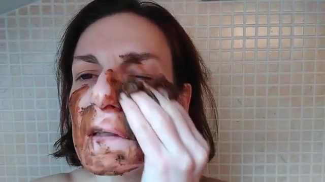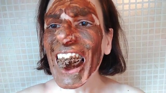 Dark haired babe smears poop on her face and pussy. She's eating poop without puking.