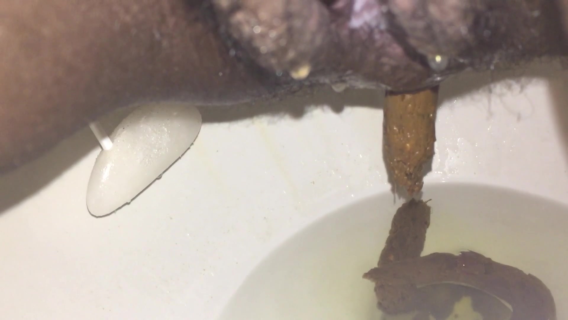 She records her creampied pussy in close up as she's pooping a lot in toilet.