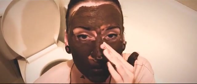 Tattooed teen smears poop on her pretty face and she's giving a sexy blowjob right after that.