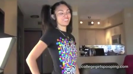 Horny college girl gets naked in front of the camera because she wants to poop on a yellow plate.