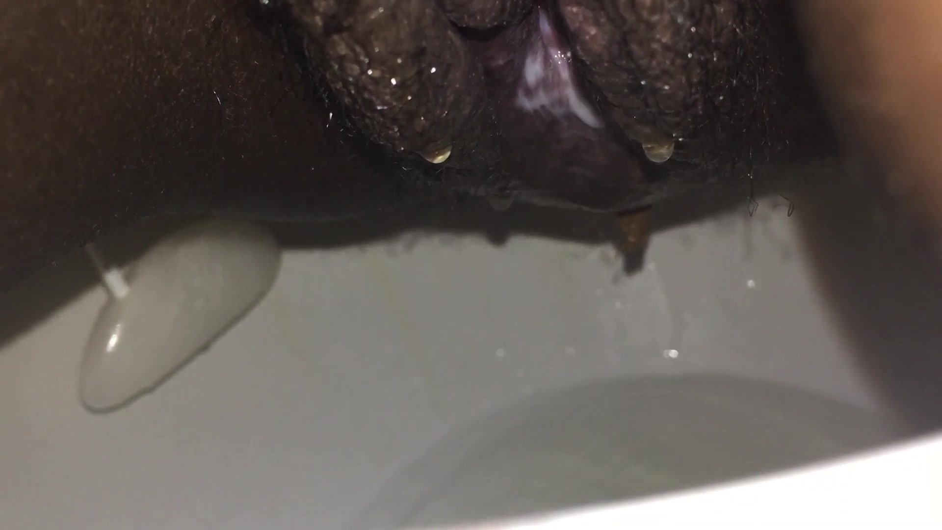 Black girl records her pussy and ass in close up and she's pooping a lot in toilet. She was creampied before by her boyfriend.