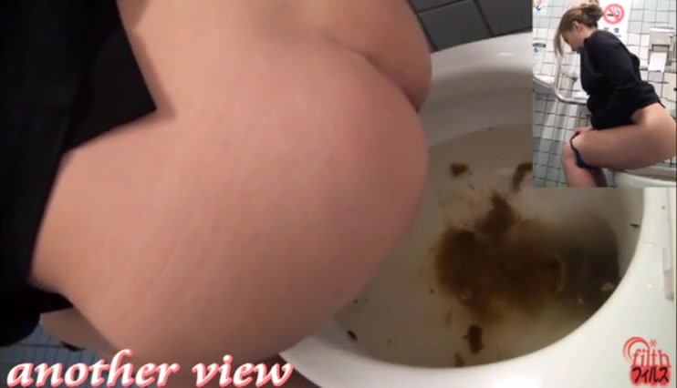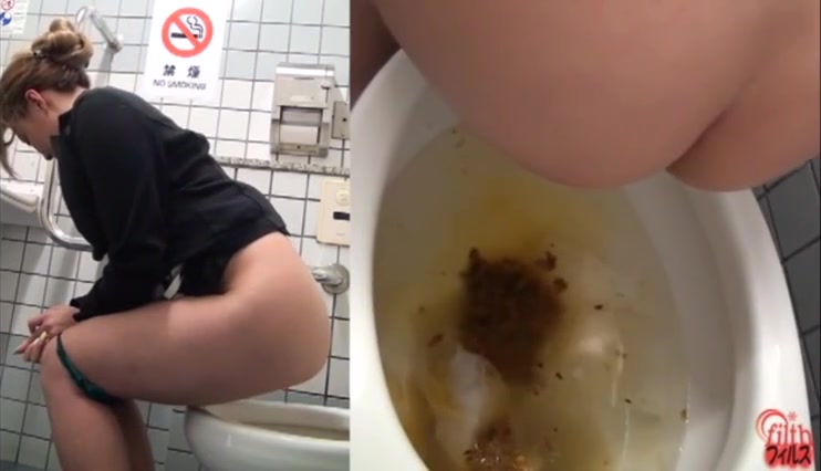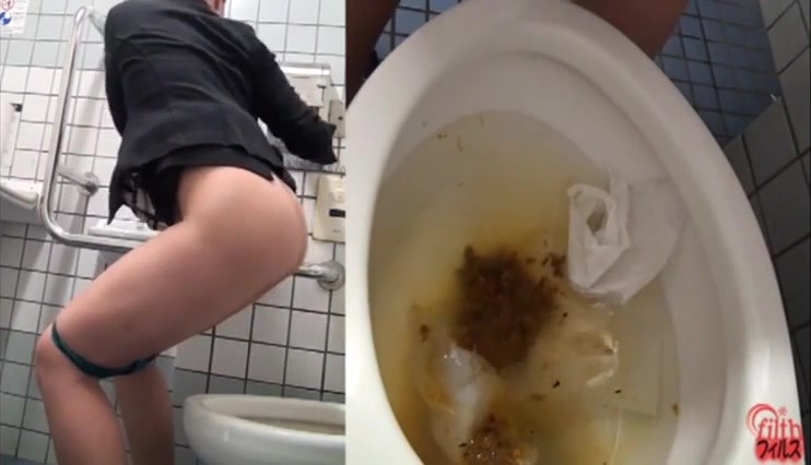 Japanese teen struggles to push a huge turd from her tight ass.